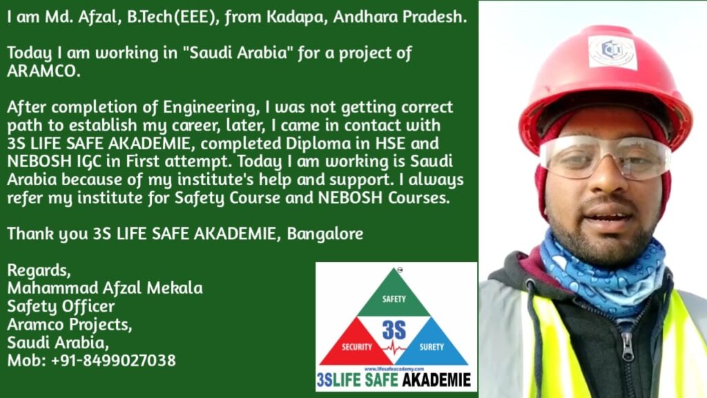 3S LIFE SAFE AKADEMIE, Bangalore, Karnataka (India), a fast growing, well known, leading institute in “Occupational Health & Safety” and “Fire & Safety”.